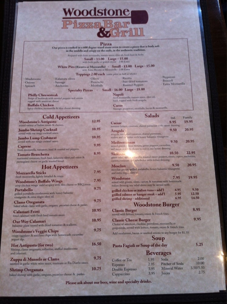 Welcome to Woodstone Pizza Bar & Grill, a delightful haven for Italian and American cuisine located at 352 W Passaic St, Rochelle Park, NJ. Known for its exceptional pizzas, the menu features a variety of options including classic Cheese Pizza and creative specialty pizzas like the Verdue Pizza, loaded with fresh mozzarella and grilled vegetables, and the indulgent Carne Pizza, boasting a hearty mix of meats.